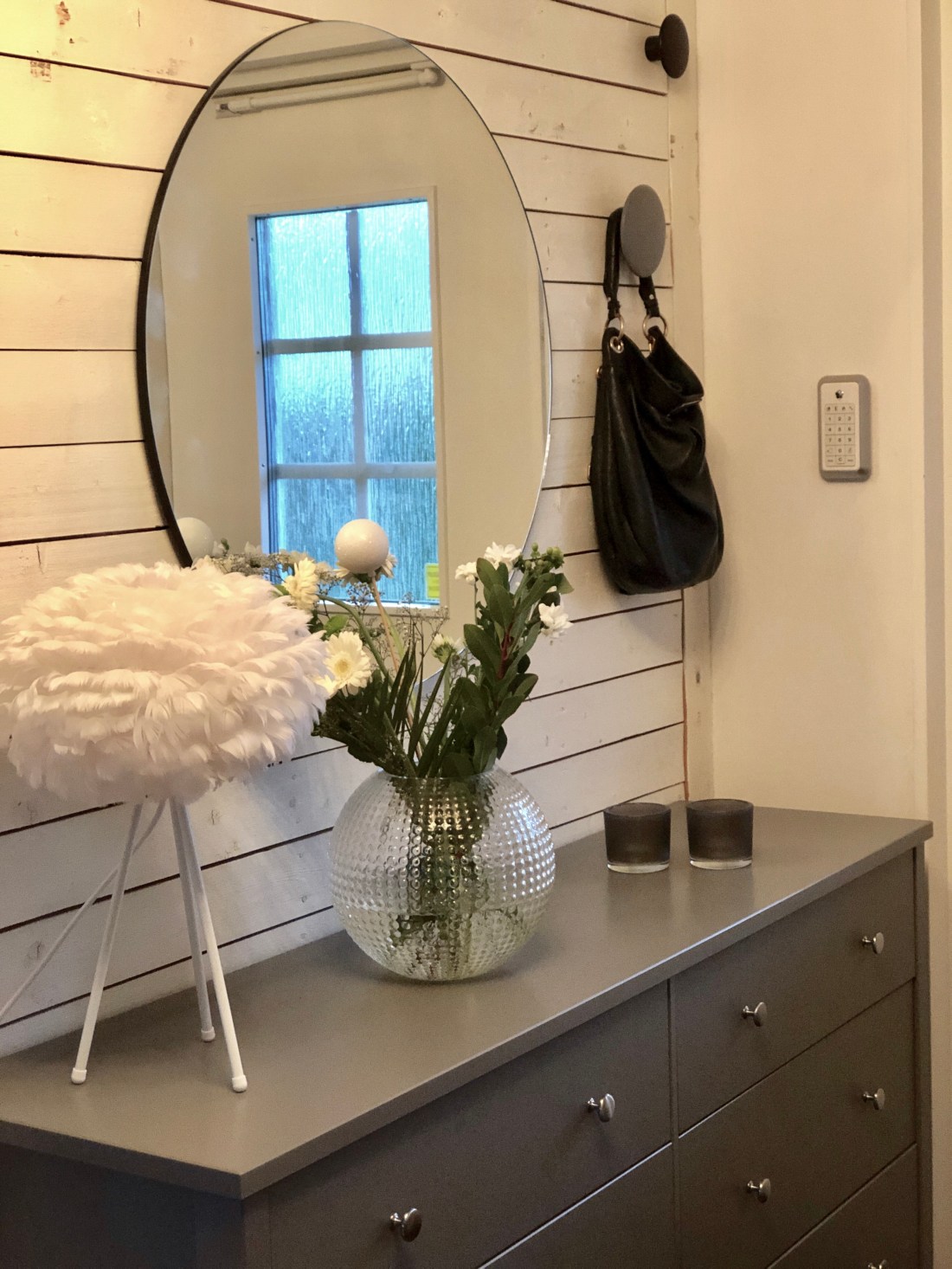 Tvillingarna föddes 12 oktober. Sedan dess har tiden bara sprungit iväg. Men någonting som vi faktiskt har lyckats hinna med är att vi äntligen tagit tag i och gjort om hallen lite grann. Vi behövde mer förvaring varför vi köpte en byrå med 6 st lådor, ställde en klädställning under trappan för våra jackor och fortsätter fundera vart vi ska göra av skorna. Kanske blir det skoskåp, men vi har inte riktigt bestämt oss än. Valde en rund stor spegel från House doctor, tycker den bryter av bra.